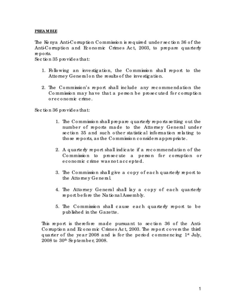 27:03:2024: The Ethics and Anti-Corruption Commission has today launched the National Ethics and Corruption Survey Report, 2023 that it carried out in December last year. Released at the Integrity Centre, Nairobi, the report provides data on the prevailing perceptions, magnitude, forms and levels of corruption in the country. It also ranks Government Ministries, Departments, Agencies and Counties and the findings are expected to inform diverse anti-corruptions. The survey reveals, among others, that six out of 10 Kenyans perceive corruption to be high with five out of 10 perceiving that corruption has been increasing and that giving and receiving bribes, abuse of office, favouritism, nepotism and deliberate delay in service provision are perceived as the leading forms of corruption and unethical conduct in public service. It also listed the Police, Immigration Department and Registrar of Persons as government departments perceived as most prone to corruption, with greed and desire for quick services as major causes of corruption in public service. Corruption, the report highlights, has hampered economic growth, affected living standards and increased the cost of living leading to unemployment and poverty. Launching the report, EACCâs CEO, Mr Twalib Mbarak said that the survey had flagged the bureaucratic systems that promote corrupt practices. He revealed that the reportâs recommendations have been translated into a Rapid Results Initiative drive that will include enhanced enforcement, heightened media campaign, and enhanced public engagement among others. Mr. Mbarak called on all stakeholders to unite against corruption and promote ethical conduct in public service. EACCâs Chairperson, Dr. David Oginde said the survey report reflects the opinions and real experiences of Kenyans while interacting with public officials. He urged public officials to uphold ethics and integrity and to practice the values and principles enshrined in Art. 10 of the Constitution. Also present during the launch were Vice Chairperson of the Commission, Dr. Monica Wanjiru Muiru, Commissioners Colonel (Rtd) Alfred Mshimba, and Dr. Cecilia Mutuku.